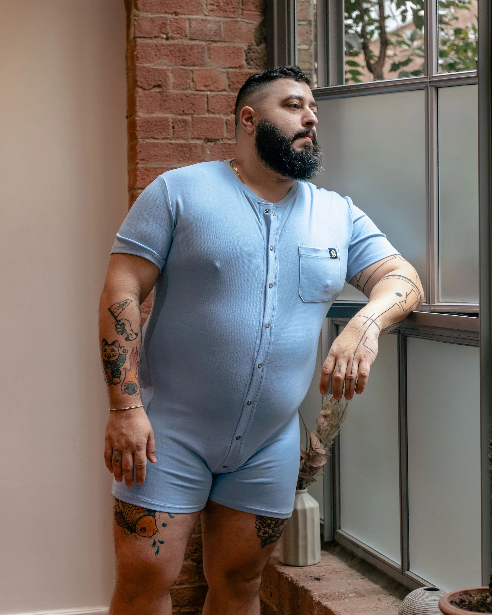 The signature short DEN Union Suit with a chest pocket and full neck-to-back popper opening for easy access in and out! The stretch cotton fabric and ergonomically designed seams help fit snugly to the body and maintain shape and structure, wear after wear.Ā